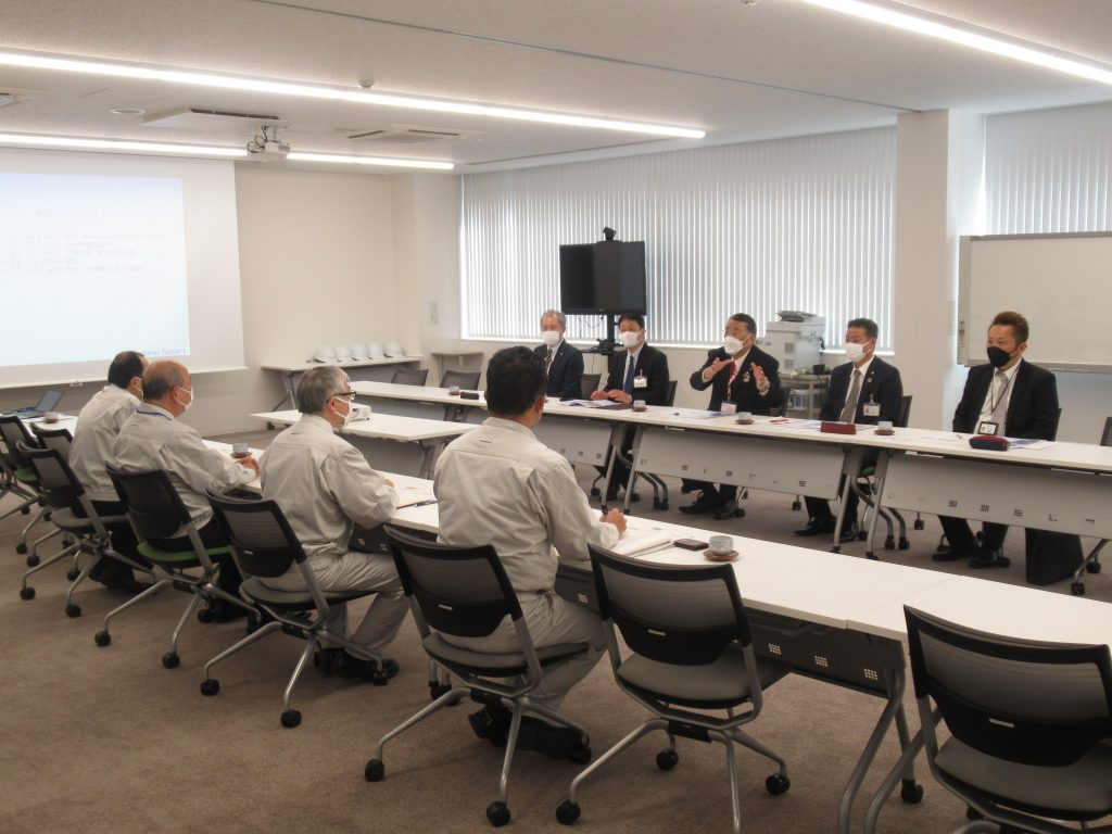 弊社代表取締役の柳井 正巳から、事業所内の案内とともに、業務の取組状況についてご説明しました。
